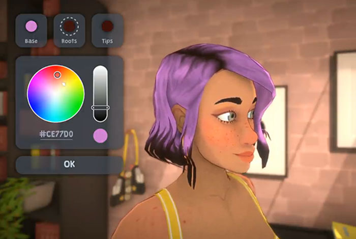 헤어의 경우 다양한 기능을 통해 사용자 정의 헤어 컬러 기능을 선보이는데요. 색상을 선택 후 컬러 휠을 통해 더 자유로운 컬러를 연출할 수 있고, 영역별 헤어를 세부적으로 분할하여 부분적으로 스타일을 주는 것도 가능합니다.
