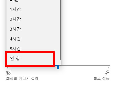 절전모드가 불필요한 경우에는 완전히 기능을 해제하는 방법이 더 편할 텐데요.