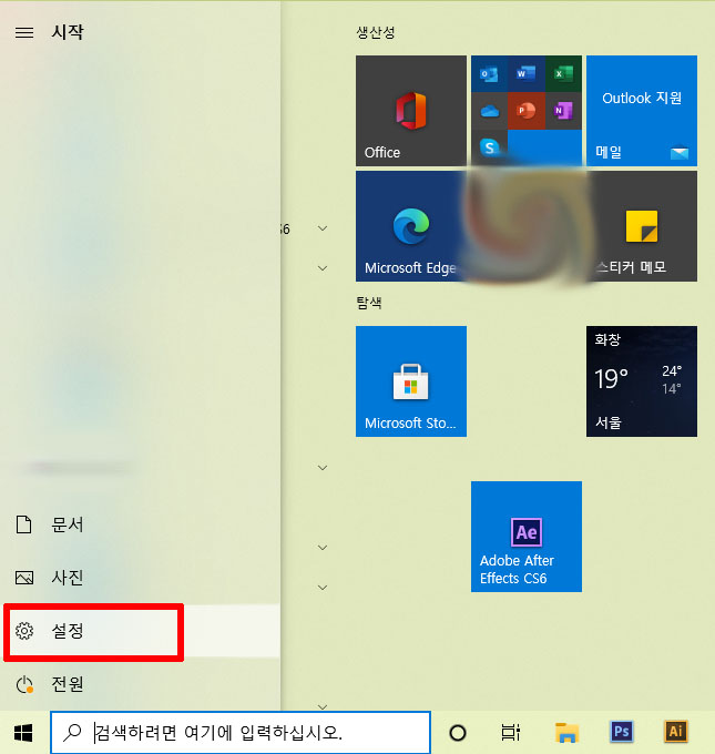 시작 버튼에 있는 설정으로 들어간 후 윈도우 옵션을 변경할 수 있는 창을 띄워주세요.