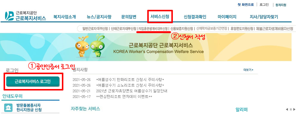 직업훈련생계비는 근로복지서비스 홈페이지(http://welfare.kcomwel.or.kr) 또는 방문 신청이 가능합니다.