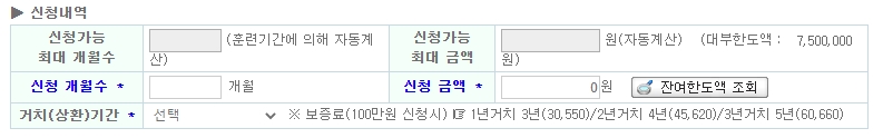 신청서 중에 '신청개월 수'는 신청 가능 최 대개 월 수(훈련기간)에 자동계산된 후 그 범위 안에서 설정 가능합니다. 예를 들어, 훈련과정이 1월 15일 ~ 3월 15일이라면 최대 신청 가능 개월 수는 총 3개월로 분할 지급됩니다. 월별 50 ~ 200까지 지급되므로 대부금액을 500만원으로 가정했을 때 (1월=200만원/2월=200만원/3월=100만원)와 같은 방식으로 분할되어 지급됩니다.
