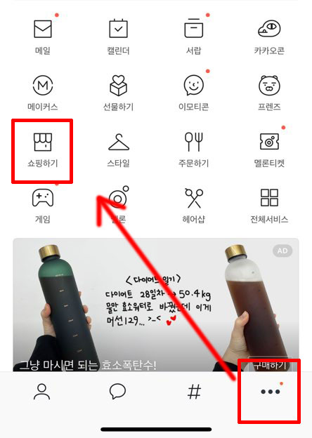 채널을 등록 안하셨다면, 설정 텝 > 쇼핑하기 를 통해서 입장할 수 있습니다. 채널을 통해 광고 메시지가 받고 싶다면 친구 목록텝에서 돋보기를 눌러 '카카오톡 쇼핑하기'라고 검색 후 등록해주세요.