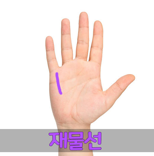 재물선은 새끼손가락 밑쪽부터 세로방향으로 내려오는 선입니다. 재물선 또한 태양선만큼 보기 드문 희귀한 손금으로, 보통의 사람들과는 다르게 돈을 벌거나 큰 규모의 돈을 벌 수 있는 사람일 수 있습니다.