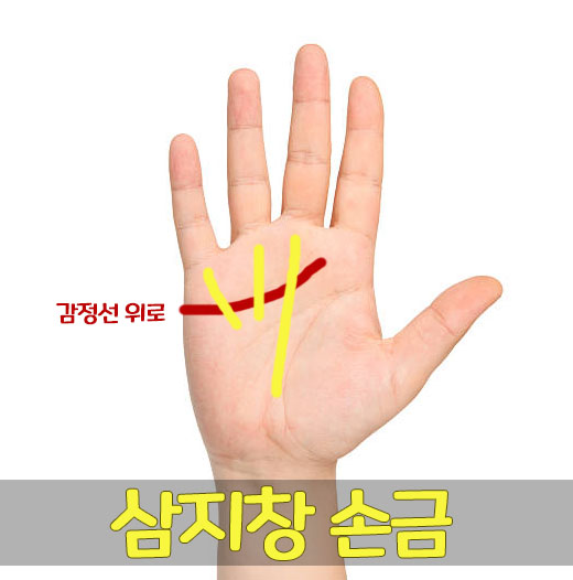 삼지창 손금은 매우 희귀한 손금으로, 감정선 위로 재물선, 태양선, 운명선 3개의 선이 삼지창 모양으로 나타납니다. 이 손금은 선천적으로 나타나는 것이 아닌 후천적인 영향으로 삼지창 모양이 된다고 하는데요. 현대그룹의 정주영 회장과 삼성그룹의 이건희 회장이 바로 이 삼지창 손금을 갖고 있는 만큼, 사업의 높은 성공률과 부와 명예를 얻을 수 있다고 합니다.