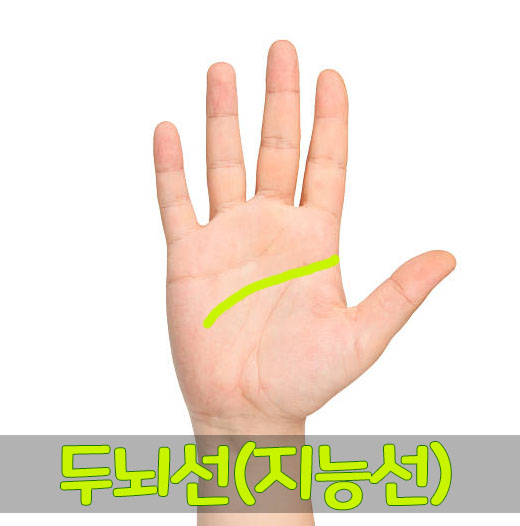 두뇌선은 감정선 밑쪽으로 엄지와 검지 손가락 사이에서 내려오는 선입니다. 두뇌선 바로 밑쪽의 생명선과 같은 곳에서 시작을 하는데, 시작점이 붙어있지 않고, 조금 떨어져서 출발하는 선일 경우 독립적인 성향이 강합니다. 두뇌 손금이 선명하고 아래쪽으로 향할수록 이성적이고, 위로 향한다면 현실적이며 다소 예민한 편입니다. 또, 선명하지 않고 두 갈래로 나뉘는 형식은 예술분야에 능통할 수 있습니다.