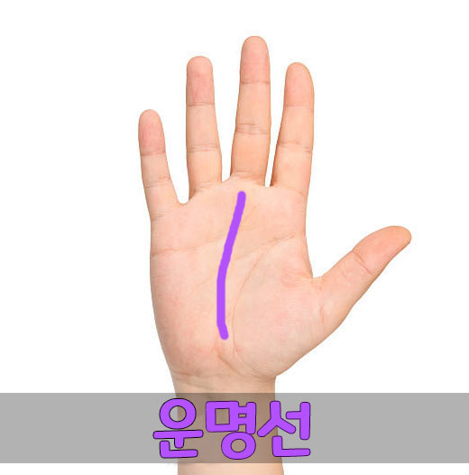 손바닥 중간을 세로로 가로지르는 선이 운명선입니다. 이 운명선의 경우 모든 사람에게 다 존재하지는 않습니다. 타고난 운명을 나타내는 이 운명선은 선명하고, 곧게, 쭉 길게 뻗어있을수록 좋은 운명을 타고난 사람입니다. 손목부터 손바닥 중간까지는 중년, 중간부터 중지까지는 초년의 운명을 나타냅니다.